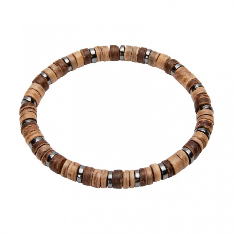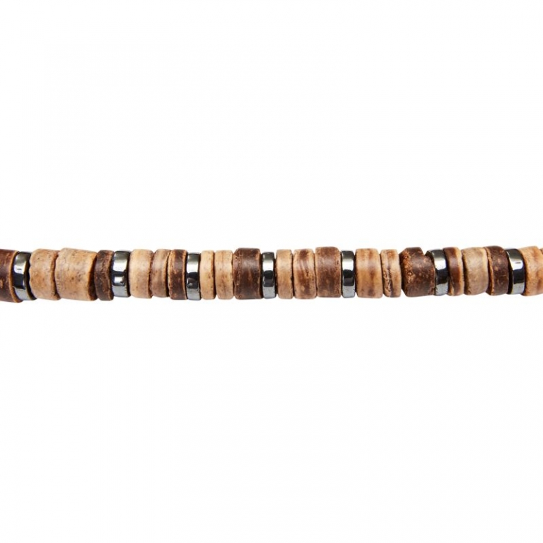 Material: Coconut hematite (widewood) Length approx. 21.5 cm - new size XL Elastic band Hypoallergenic nickel-plated 3 polyurethane pieces (custom design) Includes a hanging tag