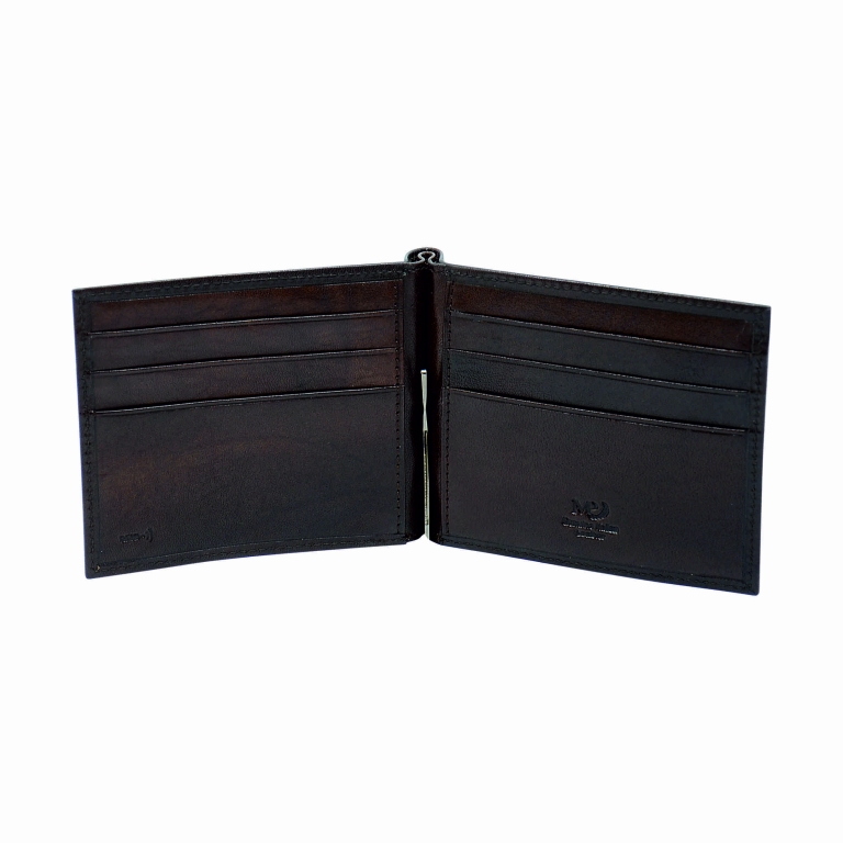 КОШЕЛЕК ДЛЯ КРЕДИТНЫХ КАРТ С ЗАЖИМОМ 6 мест для карт, отделение для мелочи, зажим для купюр. Размеры: L: 10 см x H: 8,5 см Цвет коричневый руф.