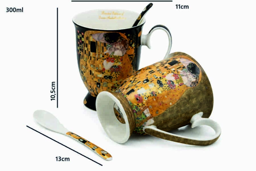 SKU: W25KL10-18966Набор из 2 фарфоровых кружек с ложками – коллекция Queen Isabell, 300 мл Кружки с изображением картины Густава Климта «Поцелуй» Изготовлены из высококачественного фарфора Устойчивы к механическим повреждениям и царапинам Идеальный подарок для ценителей искусства Характеристики продукта: В набор входят: 2 фарфоровые кружки объемом 300 мл и 2 декоративные ложки. Размеры кружек: высота 10,5 см, диаметр 11 см – идеально подходят для чая, кофе с молоком, капучино или травяных настоев. Картина Густава Климта «Поцелуй», воспроизведенная на этой кружке, является одним из самых узнаваемых произведений искусства всех времен. Художник использовал технику масляной живописи и золотого рельефа, что придало картине неповторимый характер. Теперь, благодаря этим кружкам, вы можете наслаждаться красотой этого произведения искусства в любое время, попивая утренний кофе или вечерний чай. Эксклюзивная подарочная упаковка в форме сердца – элегантная коробка с логотипом бренда Queen Isabell, идеально подходящая для подарка. Высококачественный фарфор, богатый деталями и выдержанный в художественном стиле, делает этот набор не только функциональным, но и декоративным элементом любой кухни или столовой. Идеальный подарок для пары, на День святого Валентина, свадьбу, годовщину, День матери или любой другой особый случай.